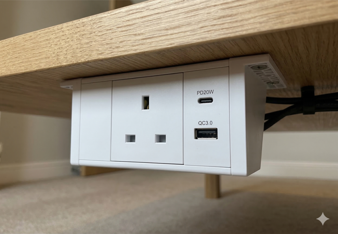 Specs: 1 x UK type power sockets – 3 Pin BS 1 x Twin USB (Type A+C) power charger